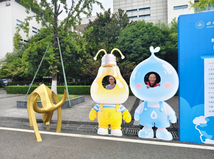 在三校区的新生报到点,三位特殊的“新成员”——憨态可掬的“川农牛”新雕塑成为了网红打卡点。这三座崭新的“川农牛”由后勤管理处动力及修缮一科制作并运往三校区,它们与“灯泡宝宝”“水滴宝宝”组成了“节能天团”,成为活动现场的“人气王”。活动负责人表示,“川农牛”是学校的吉祥物,是川农大“艰苦创业、开拓奋进”精神与品质的体现,从“新生”到“新牛”,从“承诺”到“实践”,希望同学们能将节能理念贯彻到日常学习生活中,为节约型校园的建设贡献力量。