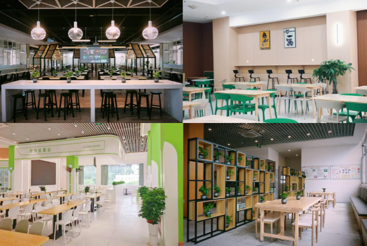 雅安校区食堂改造覆盖全域13600 平方米,对墙面、地面等全面翻新,优化后厨设备布局、防滑及通风。调整 50 个特色餐饮档口,新增轻食等品类,按 “便捷分流” 减少排队。功能上增设 “共享厨房”、食堂大屏及带 USB 充电的多功能学习区。用餐区设绿意景观与微盆景,结合地域和学科特色,打造 “耕读传承” 等主题文化墙与 “特色互动” 育人区,全方位贴合师生需求。