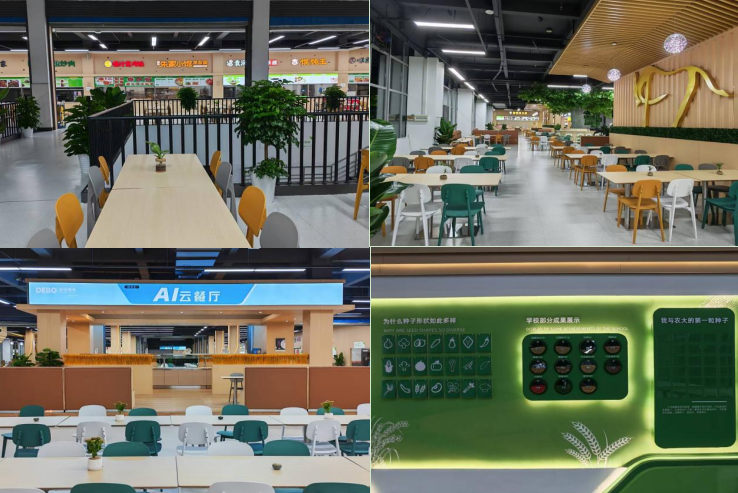 成都校区“梧桐苑” 餐厅 7 月初启动改造,围绕 “美食 + 科研 + AI” 核心蜕变。设透明亚克力 “明星作物” 种子墙,展示学校培育的作物种子,实现 “舌尖科普”。用餐区绿意盎然,以 “百年学府・青春校园” 为主线,扶手吊瓶绿植显园林特色,“川农牛” 精神融入装饰。美食上保留经典,新增香港烧腊等地域风味,AI 云餐厅自选餐荤素同价、自助称重,食安系统引入 AI 算法保障安全。