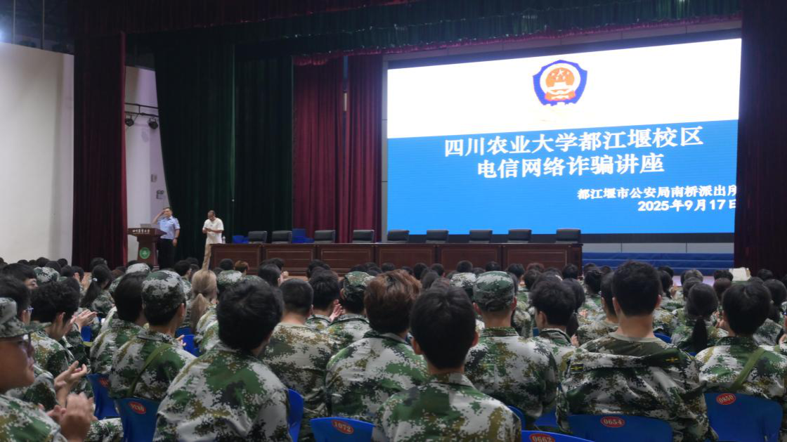 9月17日19时,校区综合管理办公室特邀都江堰市公安局南桥派出所韩永强教导员,在体育馆为2025级新生开展电信网络诈骗专题讲座。