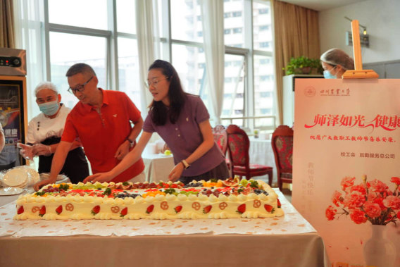 11:50活动准时启动。在都江堰校区,学校党委副书记张强与新聘教授代表侯超平共同切开节日蛋糕,将甜蜜递到教职工手中;雅安校区由校工会副主席杨志钢、新进教师代表理学院杜利杰,成都校区由教代会主席漆雁斌、新进教师代表风景园林学院李倩分别参与切蛋糕,开启分享时刻。当各校区第一块承载着敬意的蛋糕分切完成,食堂工作人员协同糕点师将蛋糕分切并迅速传递给每位用餐教职工,甜蜜滋味让大家增强归属感与幸福感。